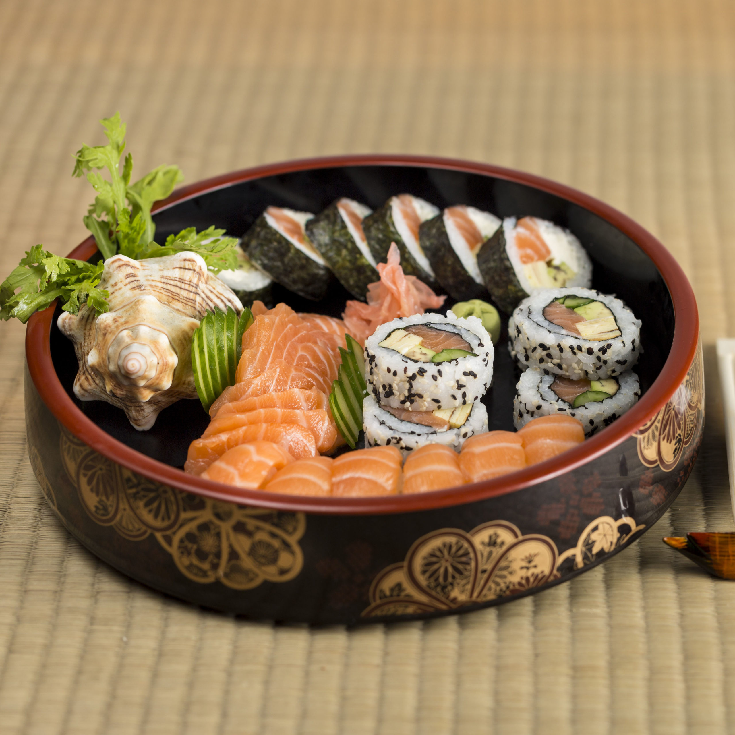 6 niguiris, 6 makis, 6 rolls y 6 sashimis.