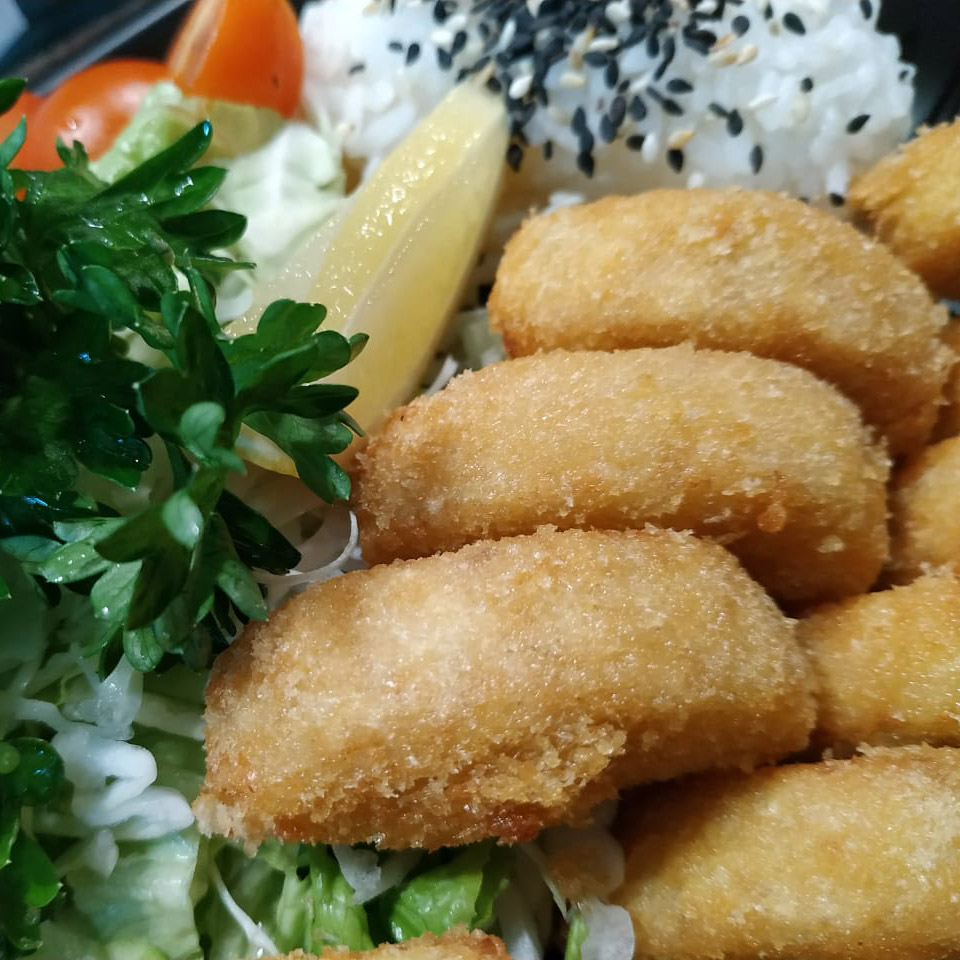 Apanados de filet de merluza y besugo. Cutlet of kamaboko