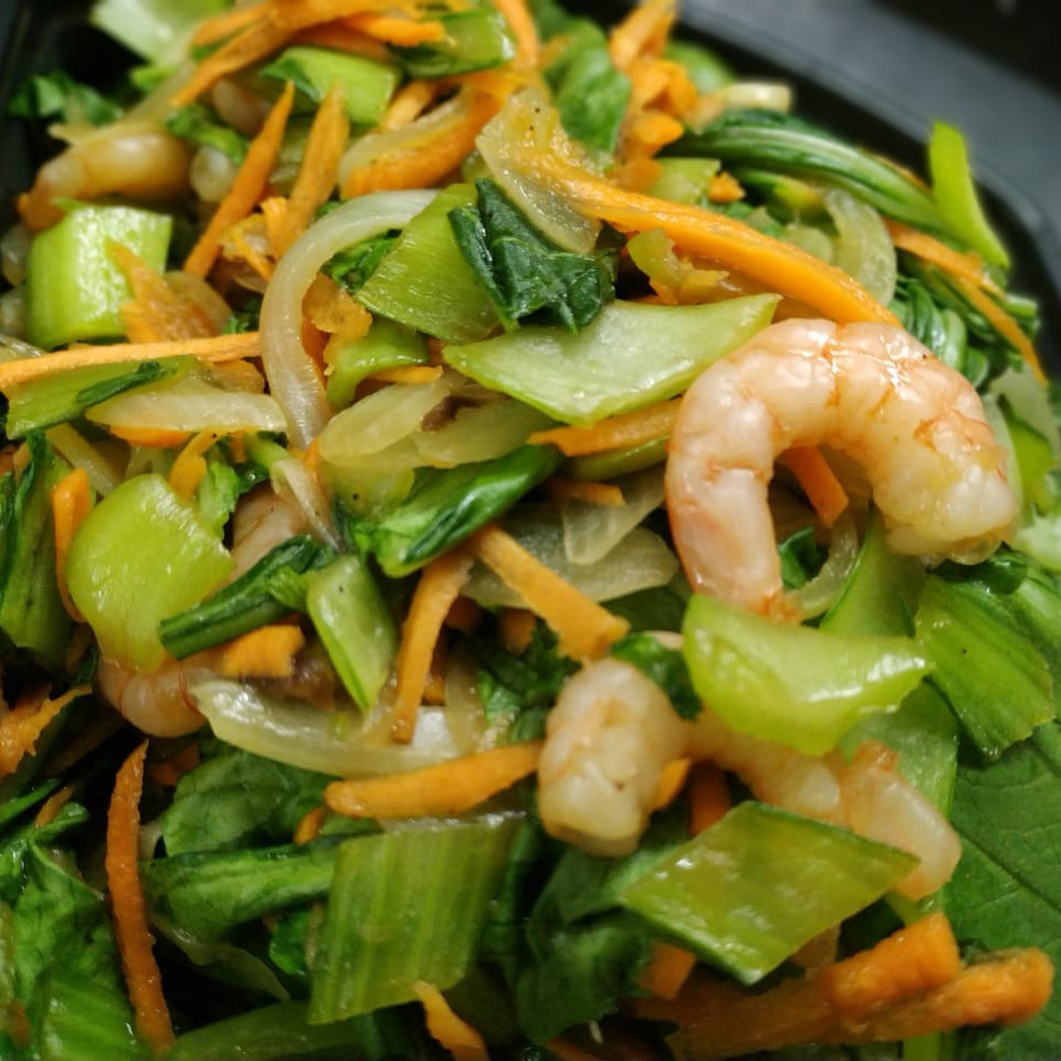 Yasai-itame con camarones